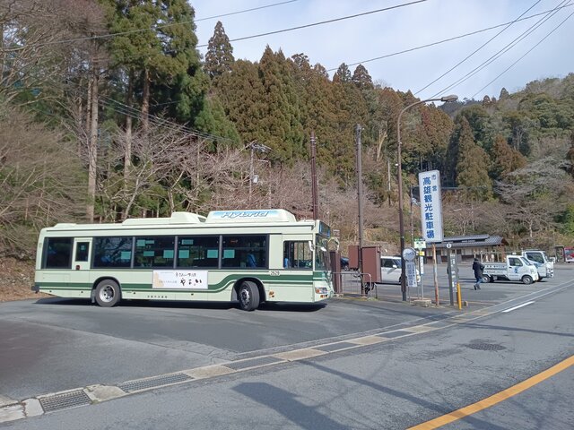 街中からバスでちょうど1時間、北山杉の林立する谷深い山中に入る。