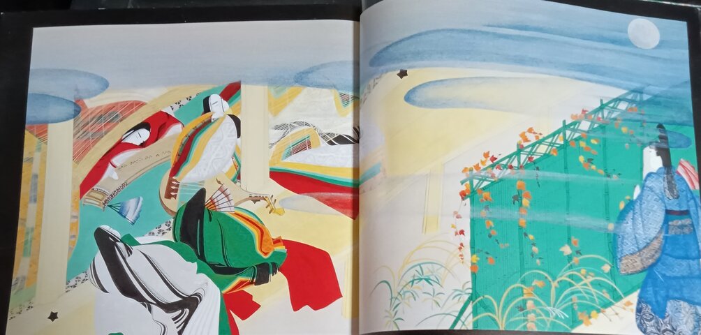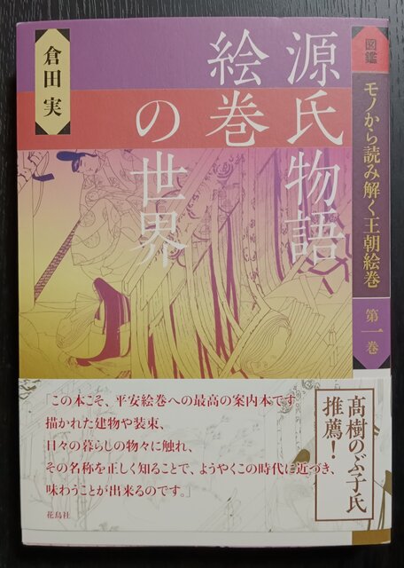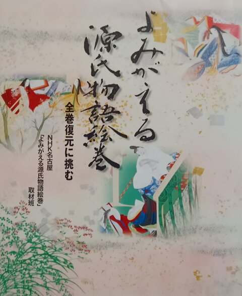 ソルティは、図書館で別に、『よみがえる源氏物語絵巻 全巻復元に挑む』(NHK出版、2006年発行)を借りて傍らに置き、色のついた二つの絵巻(原典国宝版と平成復元版)と本書の線描画による絵巻を見比べながら、『源氏物語』の世界にトリップしている。