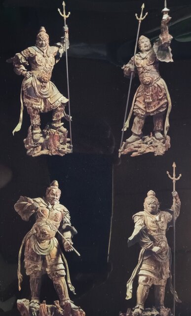 四天王は、普通、お寺の山門の中やお堂の本尊の周囲に、それぞれが守護する方角に合わせて置かれているので、名前の表示がなくとも方角さえ分かれば、どの像がどの神様なのか判明する。