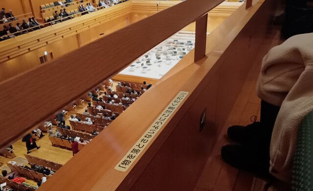 また、演奏の始まる前に複数の女性スタッフが客席を回って、手に持ったパネルを示しながら、「手すりから身を乗り出さないでください」と注意喚起していた。