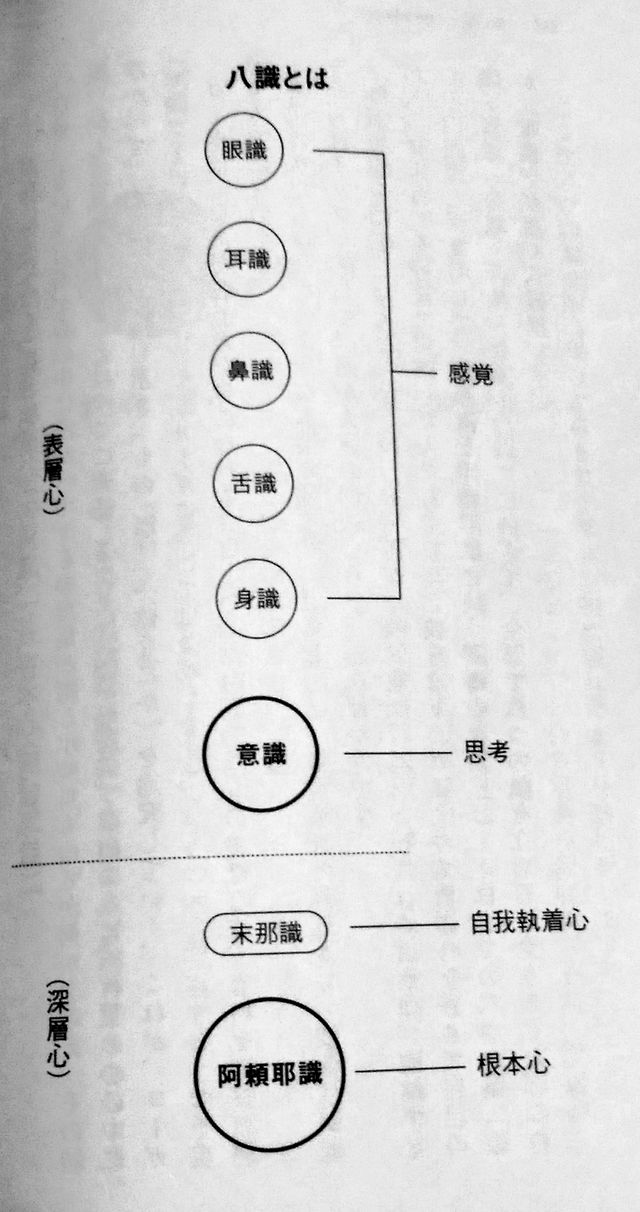 しかるに唯識思想では、この6つの識を表層心と定義し、深層心としてさらに2つの識を加える。