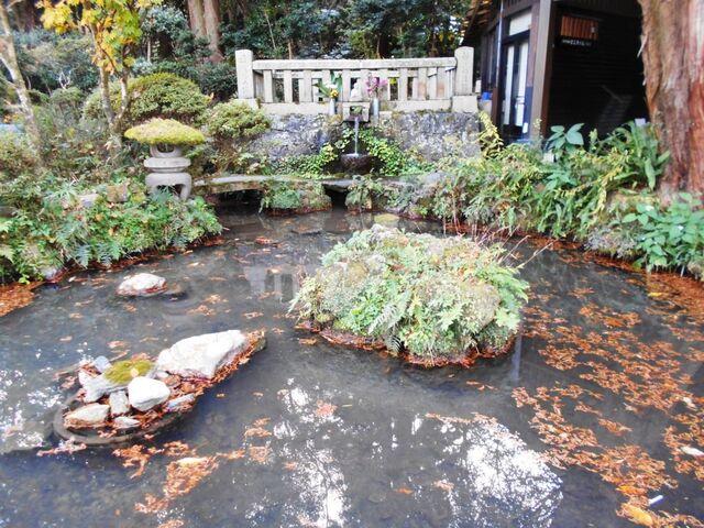 また、お寺の近くには、天皇の遺体が夏の暑さで腐敗しないようにしばらく漬けておいたという、「八十場(やそば)の水」と呼ばれる湧き水の池がある。